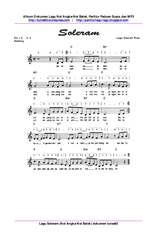 Merubah Not Angka Ke Not Balok Nada C Sekitar Musik